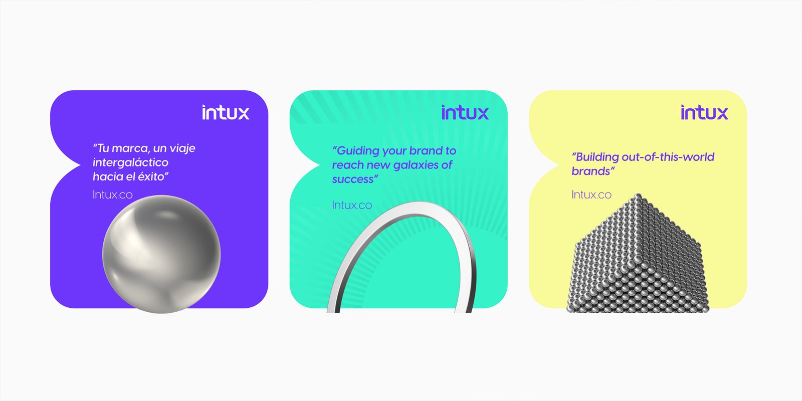 El resultado es una identidad de marca disruptiva y coherente que refleja fielmente la innovación de INTUX. Nuestra imagen espacial y el tono de comunicación “interplanetario” nos han diferenciado radicalmente en el mercado competitivo. Los elementos tridimensionales y la paleta cromática vibrante han logrado crear una percepción de alto valor y movimiento, consolidando nuestra reputación como una agencia que no sigue tendencias, sino que busca definirlas.