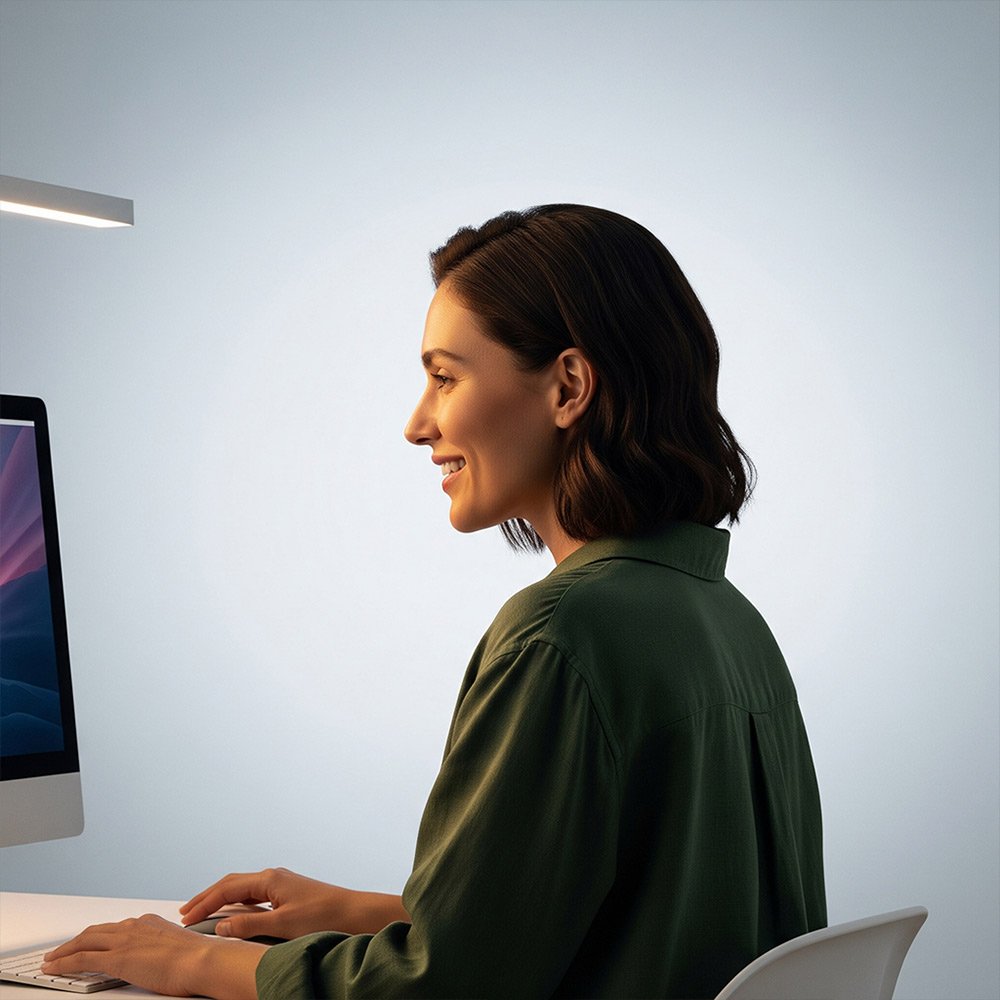 Utilicé gradaciones y tonos pastel de verde para fondos limpios y minimalistas, permitiendo que los elementos clave —logotipo, tipografía, iconografía y gráficos— respiren y transmitan serenidad. Las imágenes se plantearon en espacios casi etéreos, con iluminación suave y volúmenes sutiles que refuerzan la idea de una tecnología que envuelve, acompaña y sostiene el trabajo clínico.